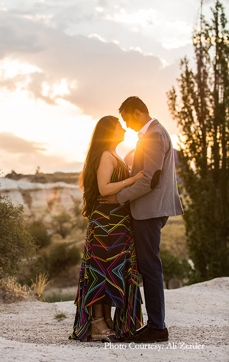 Hitesh pulled all stops when it came to popping the question. The breathtaking Cappadocia landscape in Turkey served as a glorious backdrop as he got down on one knee in front of his soulmate. “I’d once mentioned to him that Cappadocia featured on my bucket list and it was one of those places that I’d love to visit with my partner. And, little did I know that he would turn my dream into a reality!”