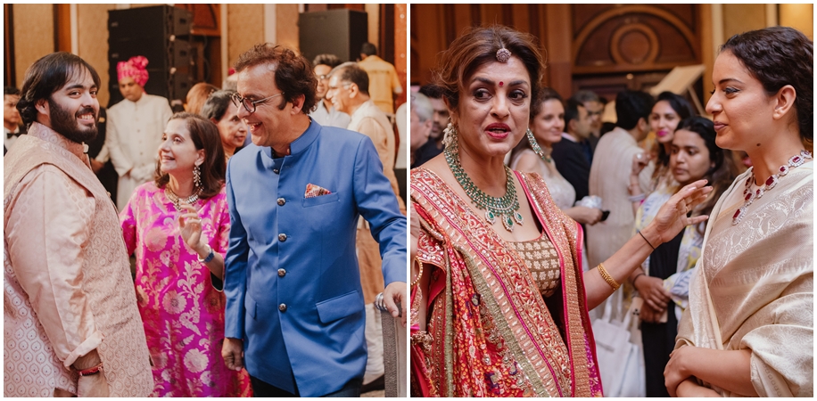 Left: Anant Ambani, Anupama & Vidhu Vinod Chopra; Right: Chhaya Momaya & Kangana Ranaut