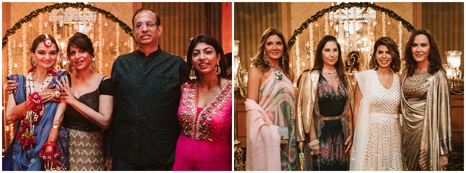 Left: Bride Daria, Varuna and Dipak Jani and Ishita Jani; Right: Stefania Brandimarte, Isabella Muratori, Lama Albabtain (From Kuwait Royal Family) and Monica da Monte (Milan’s top most architect)