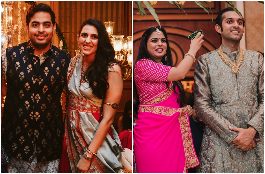 Left: Akash and Shloka Ambani; Right: Isha Ambani Piramal and Dheer Momaya