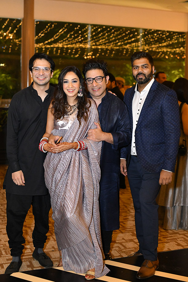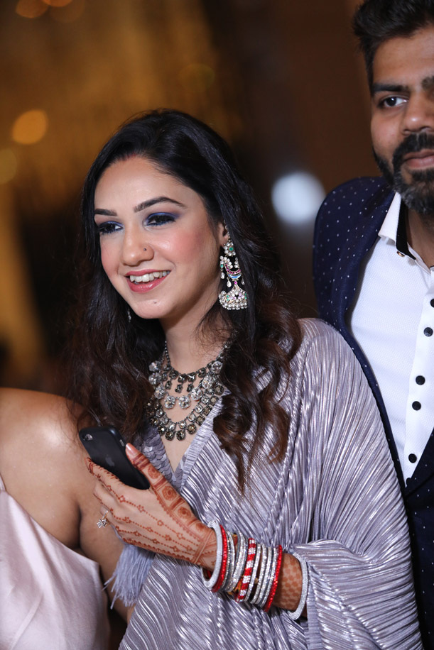 I’m from Jaipur and so in a nod to our traditions, I wore a four-piece Rajputi poshak from Rukhmani, Jaipur. I wore my mother’s bangles and gold choker. The rest of my jewelry was from Confluence Official, Suneet Varma’s collection. Vineet wore a Karrtik D creation.”