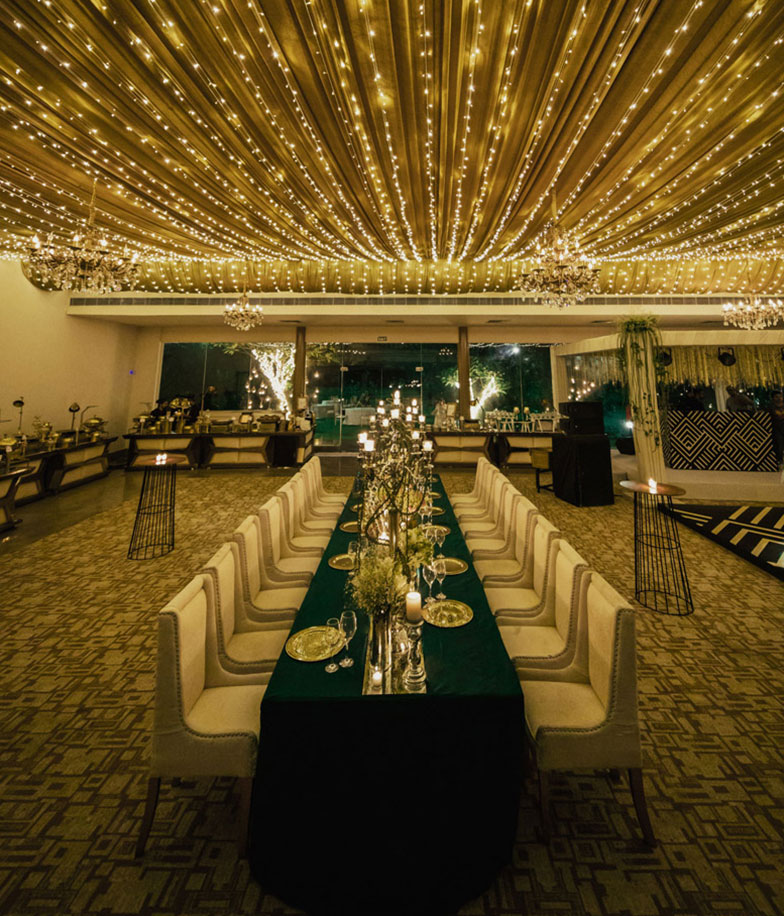The picturesque facades of Amaara Farms glistened in fairy lights in this wedding