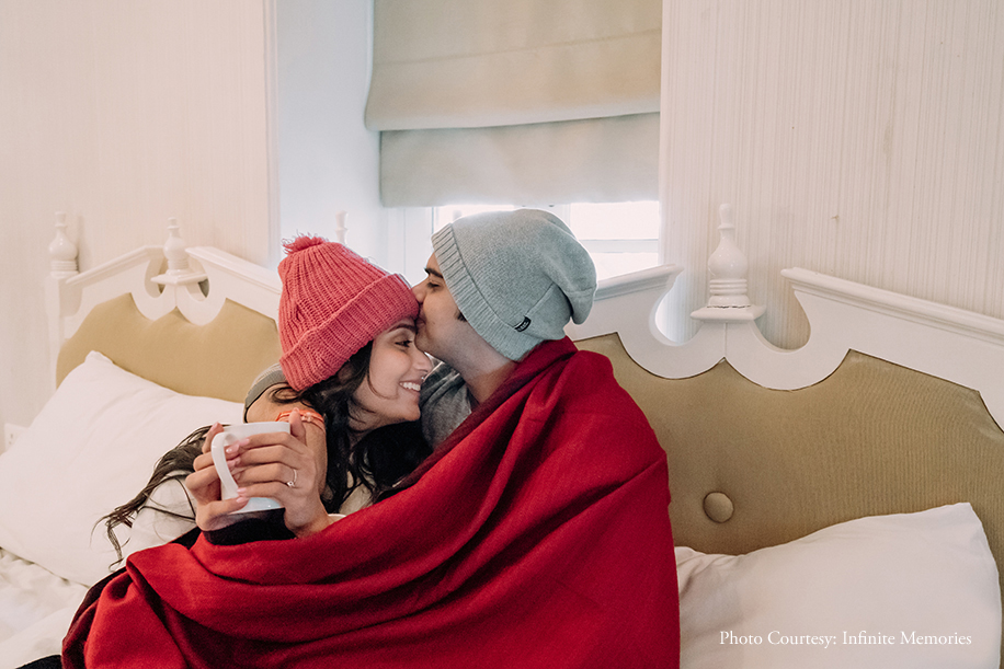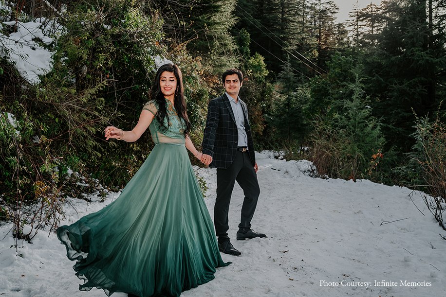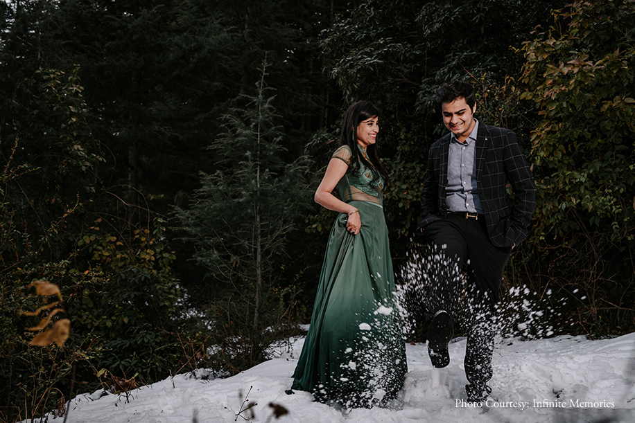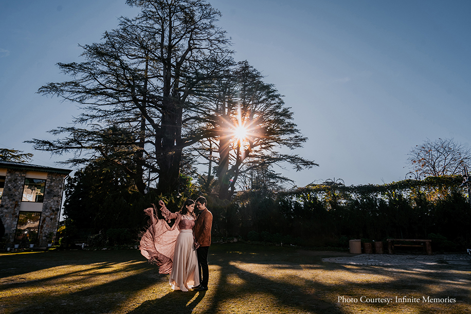 Pallavi, a Sindhi bride-to-be, and Dishant, a Gujrati groom-to-be, fell in love when their parents played cupid in their story. After years of dating, they decided to make their relationship official and celebrated it with a romantic shoot at Welcomhotel The Savoy in Mussoorie, where WeddingSutra Favorite – Infinite Memories encapsulated their beautiful moments behind their camera lens.