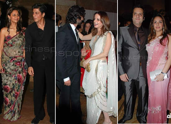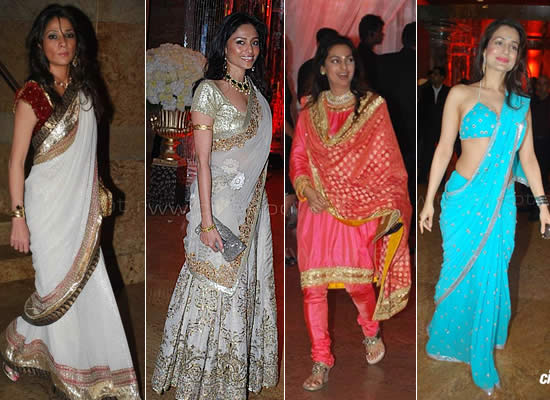 Haseena Jethmalani was dressed most appropriately for a reception—a rich velvet blouse and a white saree that looked oh-so-gorgeous!