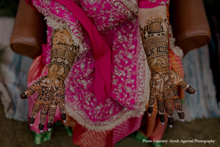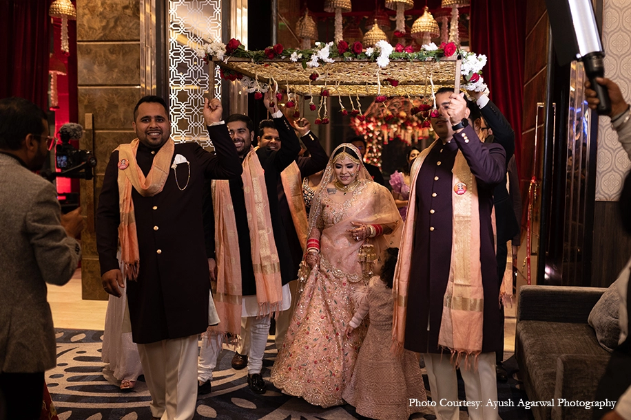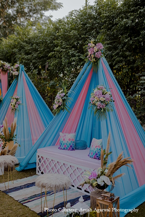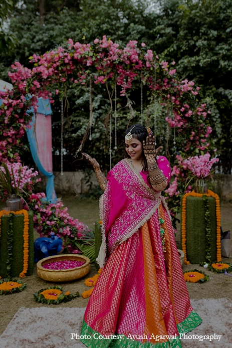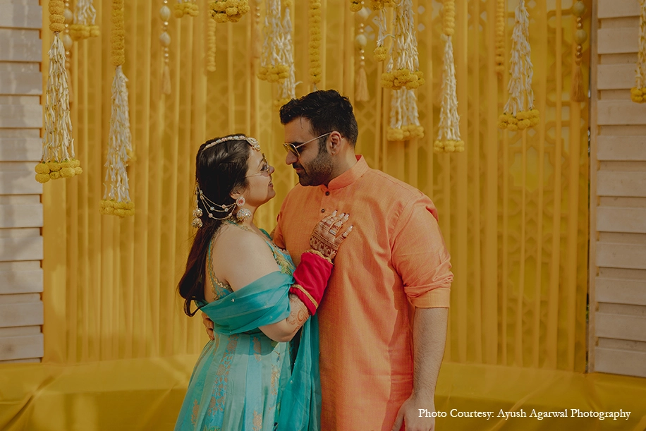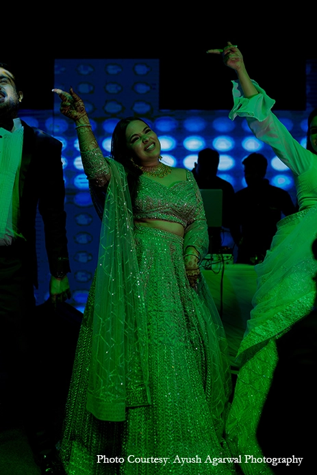 Ashina shares, “Being a huge Bollywood buff, I envisioned a grand destination celebration inspired by the movie Yeh jawaani hai deewani, and we pulled off an intimate version of the same for our Pandemic wedding. Apart from the Mehndi hosted in Chandigarh, our festivities were held at Crowne Plaza New Delhi, Rohini, where we stayed with our 200 guests. Since we were planning everything from two different countries, we handed over the responsibility of planning and orchestrating everything to The Universal Design Studios. Ayush Agarwal Photography captured all our special moments beautifully”.