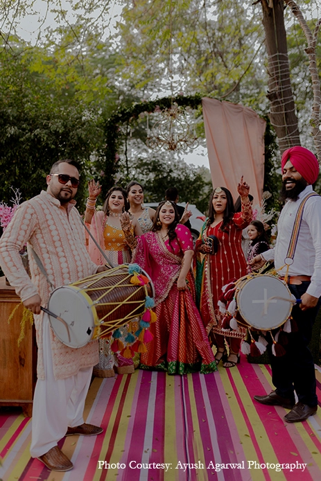 Bride’s Outfit: Aza Fashions (Engagement, Haldi), Akriti by Shakun (Mehndi), Frontier Raas (Wedding)