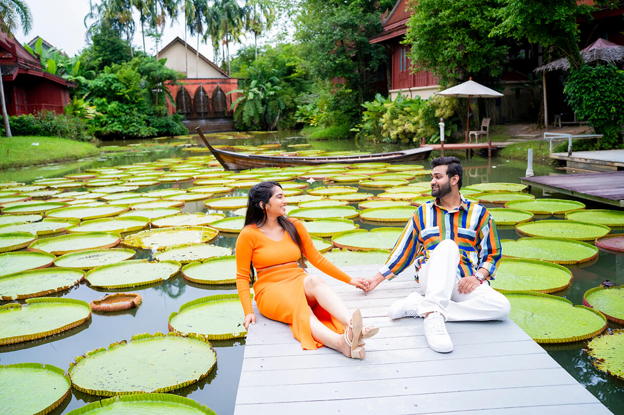This couple captured the spirit of their love in Thailand where they explored tropical gardens, beachside cafes and lotus ponds