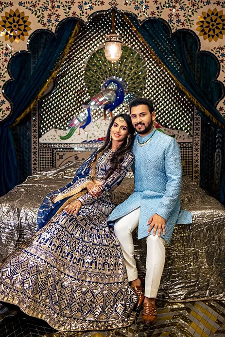 Filmy at heart with a penchant for all things grand, Vidhita Ajmera and Rishil Shah’s Sangeet and Engagement event took the cake with its sheer opulence, innovation and customized elements. Conceptualized and executed by WeddingSutra Favorite – Zest Events this event was a spectacular gala that every guest thoroughly enjoyed. Capturing the couple’s happy moments was WeddingSutra Favorite – Seventy By Two who gave the couple a treasure trove of memories.
