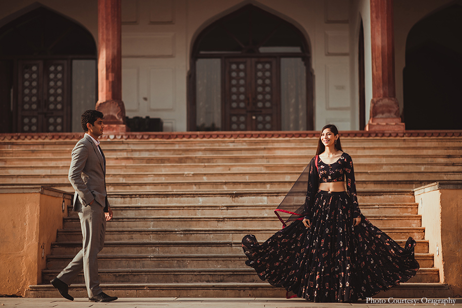 Enchanted, Siddharth and Shreya decided on this gorgeous destination as the mainstay of their pre-wedding shoot. Its iconic monuments, rural scenes, history and modernity were the perfect canvas for their picture of love. WeddingSutra Favorite Oragraphy’s talented team of photographers created a series of striking photographs. We share highlights from the stunning shoot.