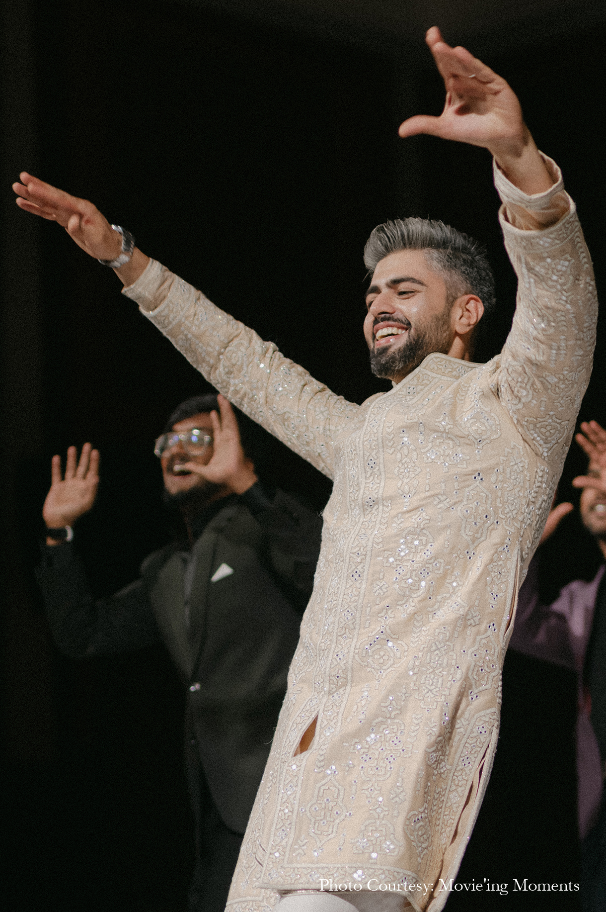 The celebrations commenced with an engagement that set the tone for the days to follow. Rashna dazzled in a silver sequinned lehenga adorned with geometric embroidery, paired with emerald and diamond jewels, while Behram complemented her in a delicately embroidered ivory sherwani. The evening exuded warmth and intimacy, featuring a pristine white tiered cake and thoughtful touches that reflected the couple’s playful chemistry. With chandeliers casting a soft glow over emerald drapes and lush florals, the space offered a refined backdrop for the duo to exchange rings.