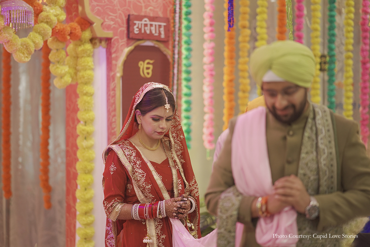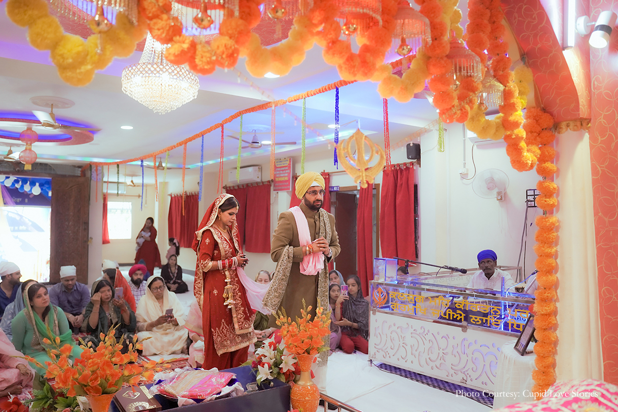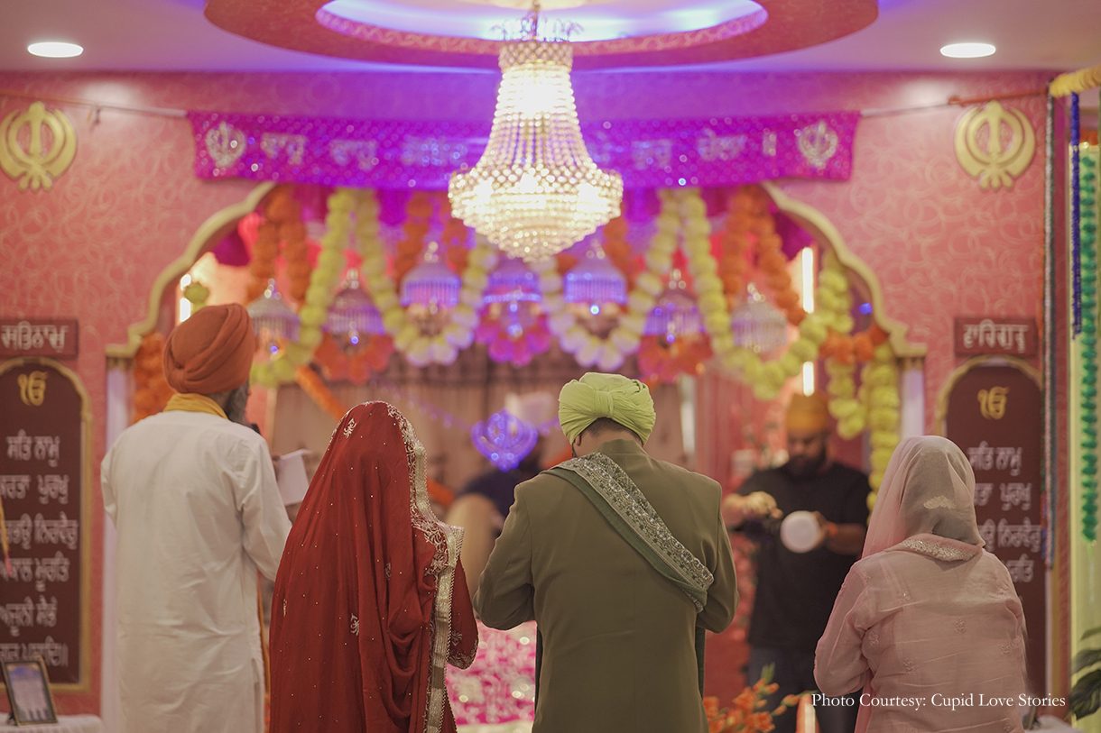 The next morning began with a traditional Anand Karaj ceremony at the local Gurudwara. Keeping it simple with minimalist orange floral decor, the couple celebrated the auspicious occasion with their close friends and family.