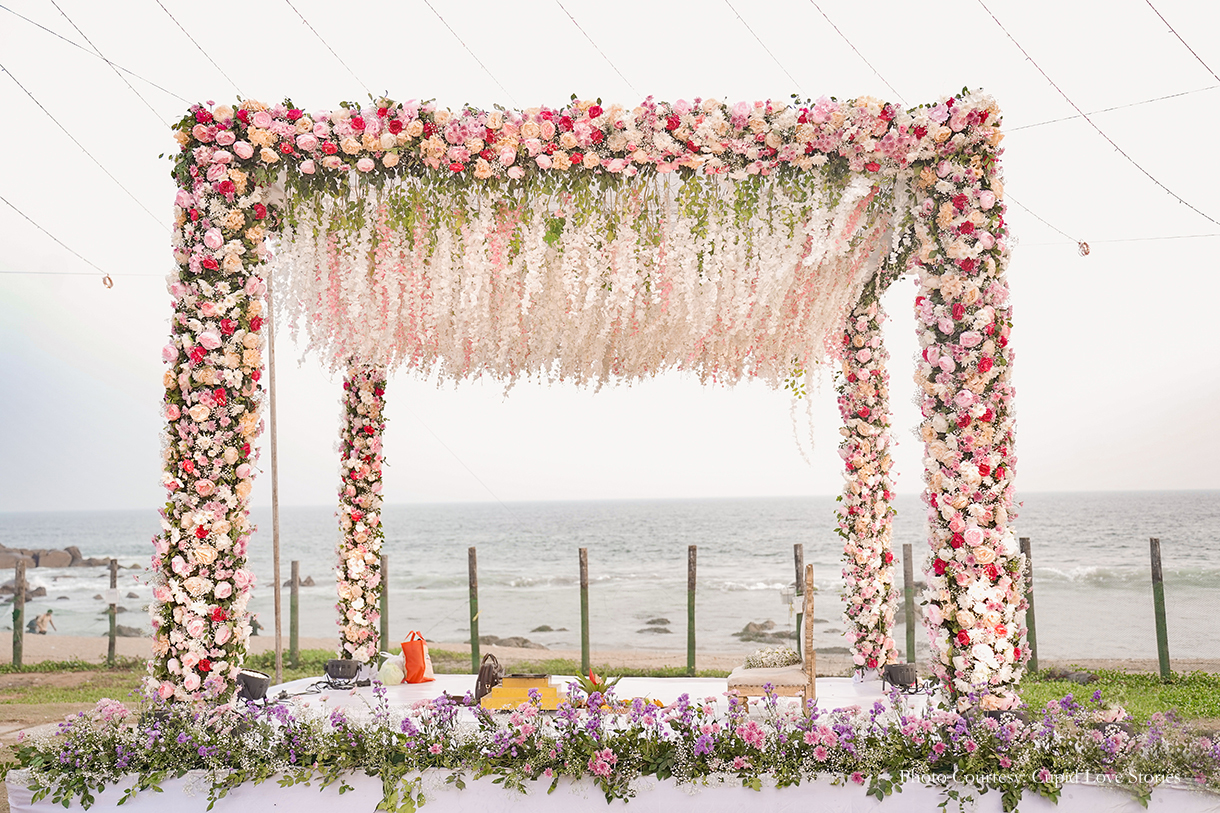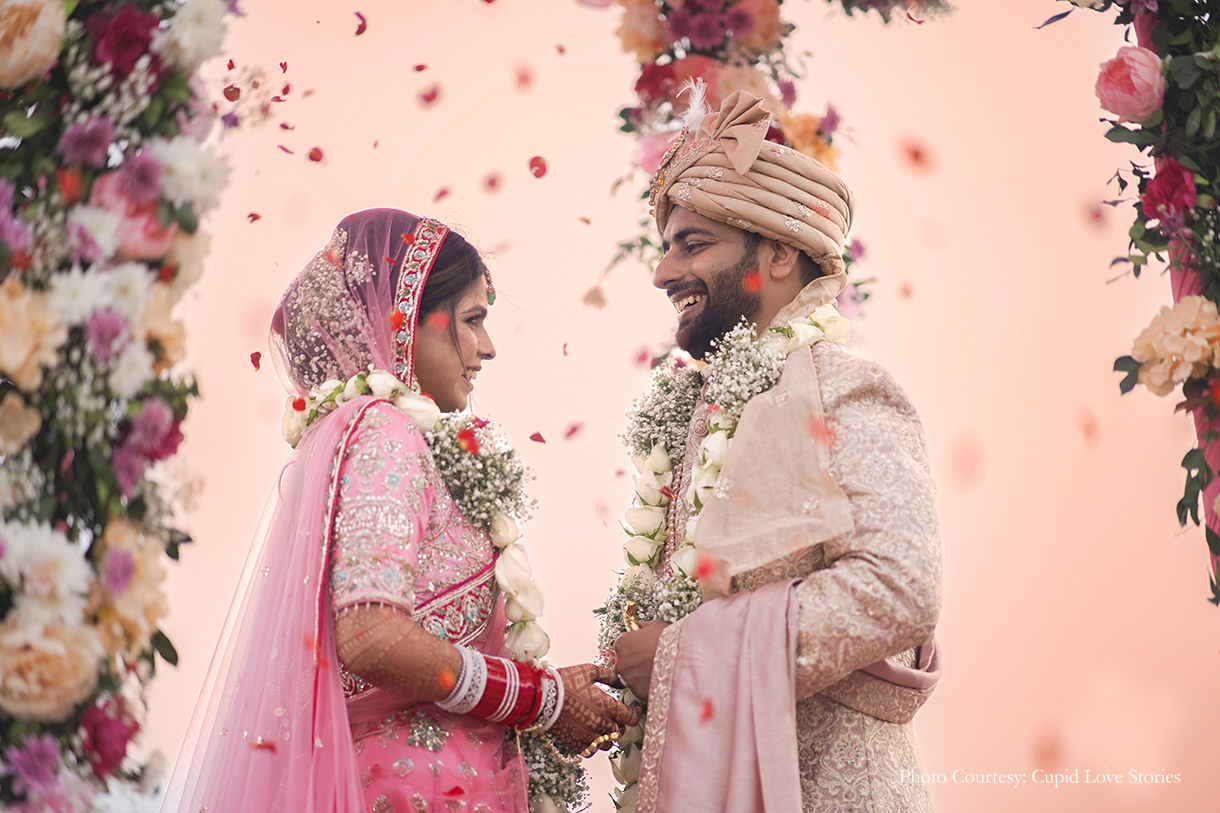 Imagined with a romantic pink decor palette that lit up in the rays of the setting sun, the beach wedding was as magical as could be. Dressed in hues of pink to match the mood, the couple was the picture of happiness as they vowed eternal love.
