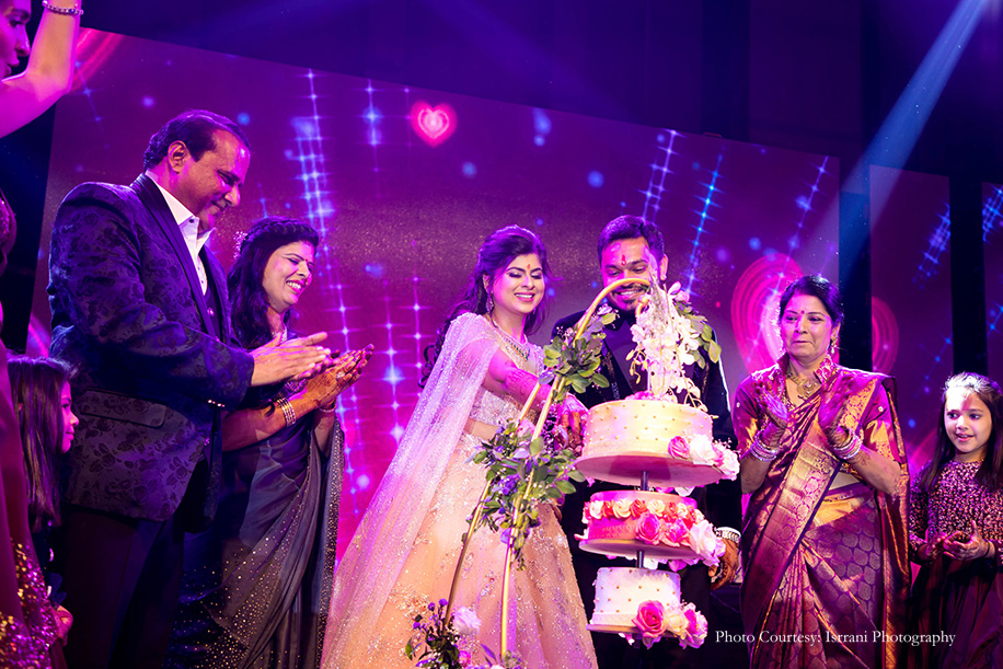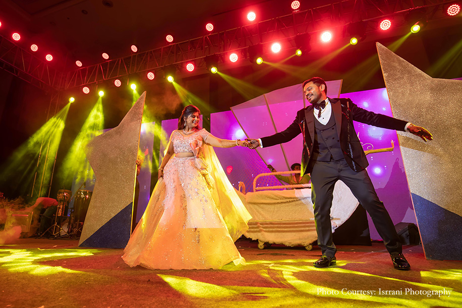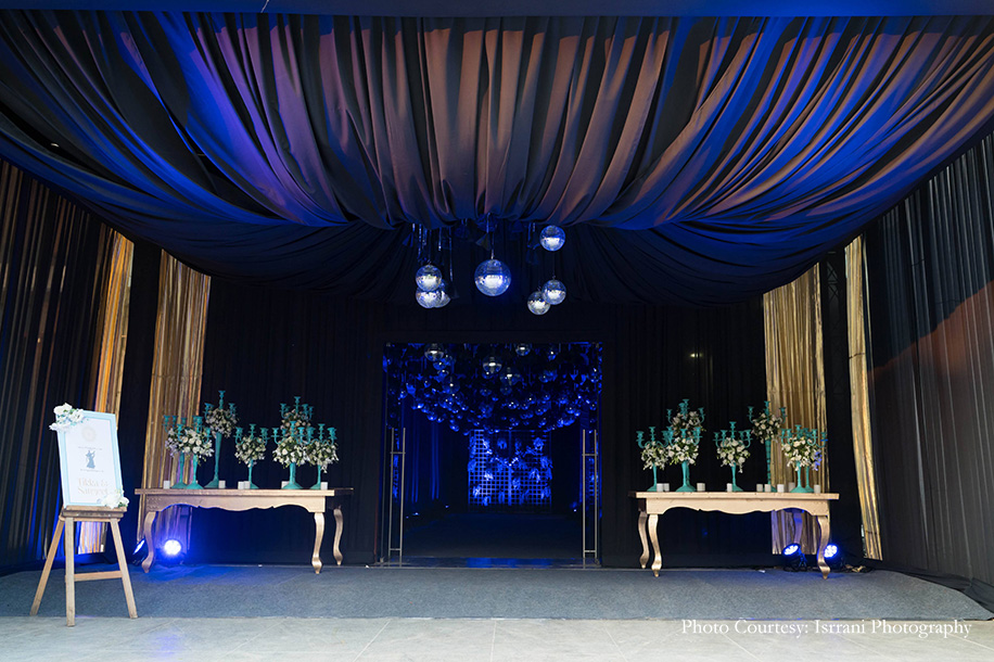 Moving up the glamour stakes, while eschewing tradition, the duo’s sangeet was a dazzling affair hosted at one of the venue’s spacious ballrooms. Equipped with a colossal stage and with an LED screen serving a backdrop, each dance performance was a feast for the eyes as the couple’s family members shook a leg to their favorite tracks. However, the highlight of the evening was a romantic proposal by Aashish in which he popped the question to Nidhi on stage as everyone looked on.