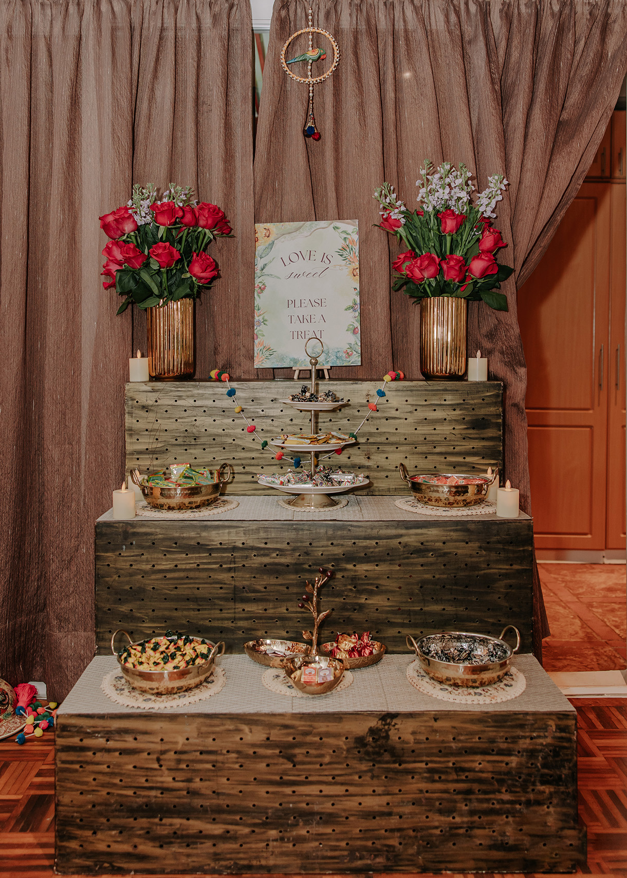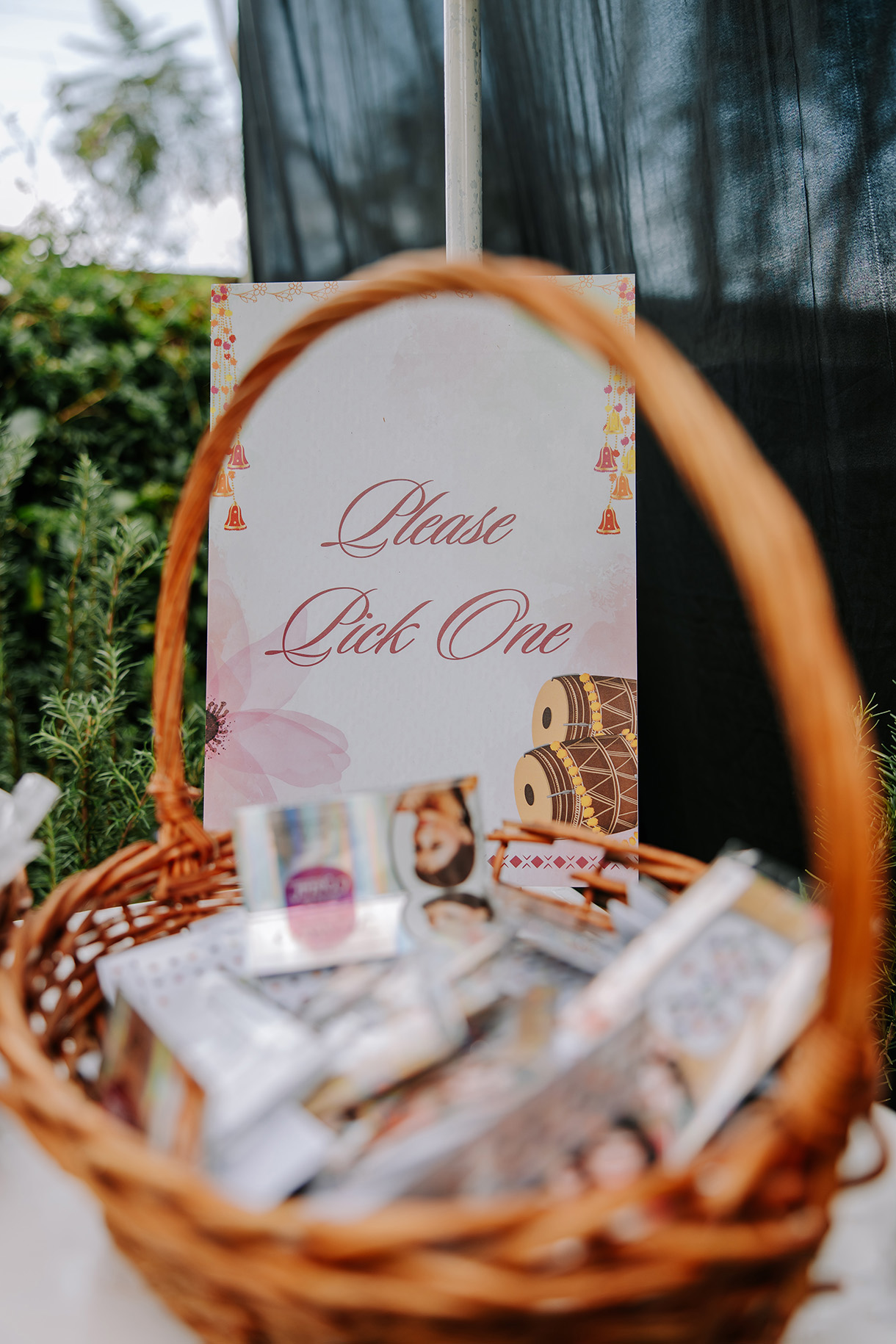 Next came the Mehendi, bursting with vibrancy and Punjabi charm. Hues of mustard, fuchsia, and bottle green merged seamlessly with handcrafted elements, gota tassels, and phulkari-inspired décor. A DIY Potli Bazaar added an interactive flair as guests created their festive keepsakes!