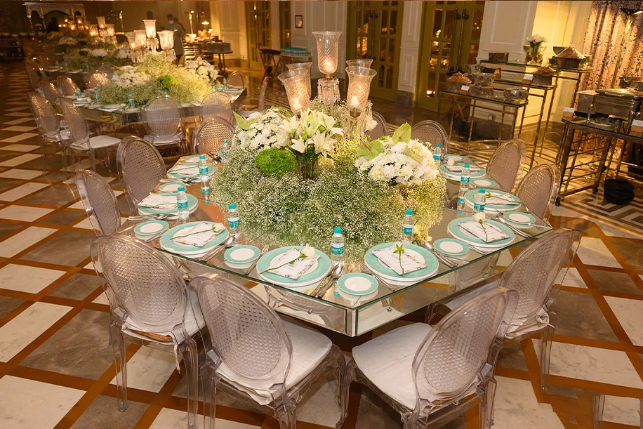 The highly personalized event was meticulously orchestrated by the team of FB Celebrations to bring every last detail of the couple’s vision to fruition. Sharing their insight about what went into making it a reality, they share, “We curated every detail to marry our client’s taste and sensibilities to our strength. From the refreshing upholstery and specially curated music for the boats that ferried the guests to the hotel, the exquisite floral arrangements made from imported flowers and even choosing a specific fragrance for every function to complement the mood, a lot of attention went into crafting an impeccable celebration. The couple wanted the experience to be special for every friend, family, and guest, and we did our best to make that happen, including curating every single meal to suit their taste preferences, specially formulated cocktails, personalized treats, and much more.