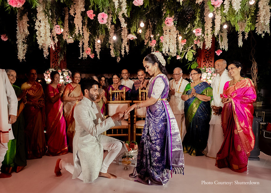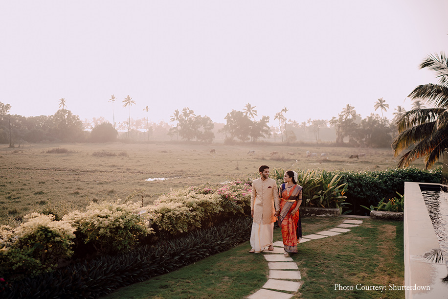 Veena and Neil first noticed each other in college. However, as fate would have it, the duo only connected a year and a half later at a mutual friend’s party and since then, there’s been no looking back for them. Hosted amidst the lush landscapes of Goa and captured by WeddingSutra Favorite – Shutterdown who made every click count with their effortless expertise, the engagement was the epitome of elegance as it fused two South Indian cultures together to create a celebration that brimmed with fun.