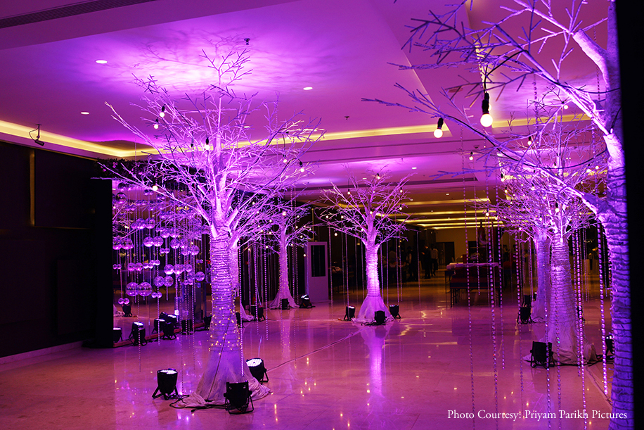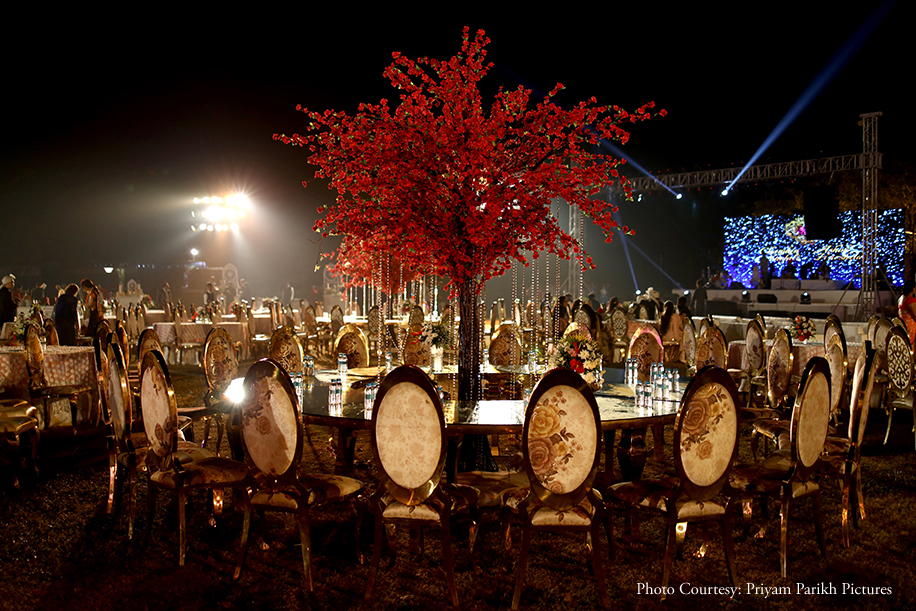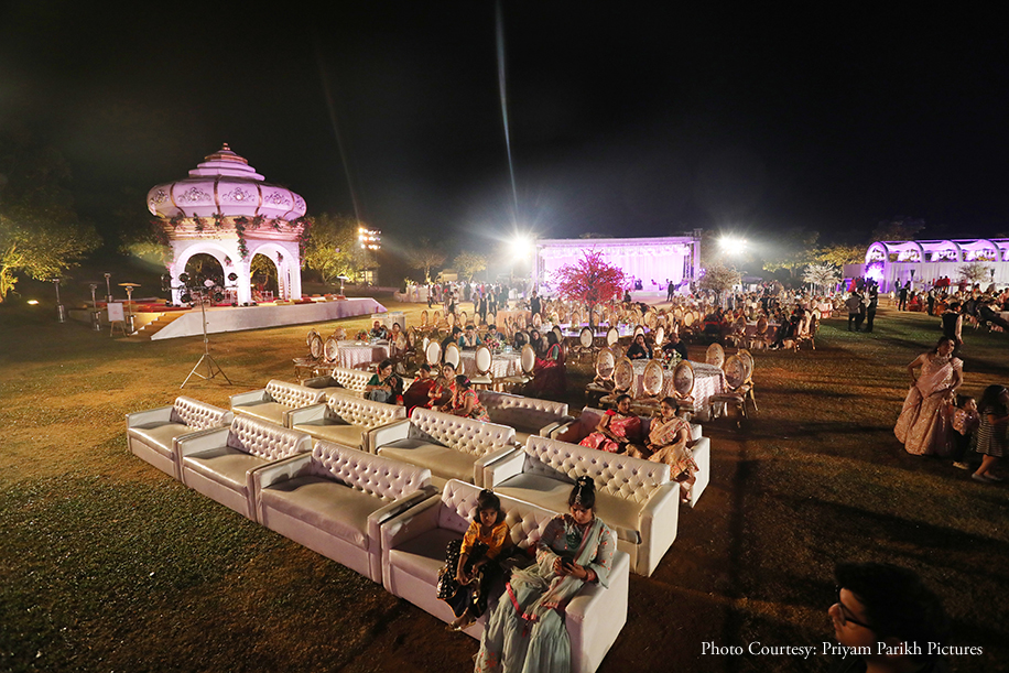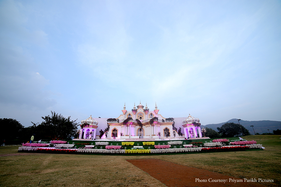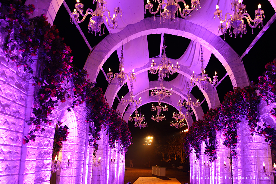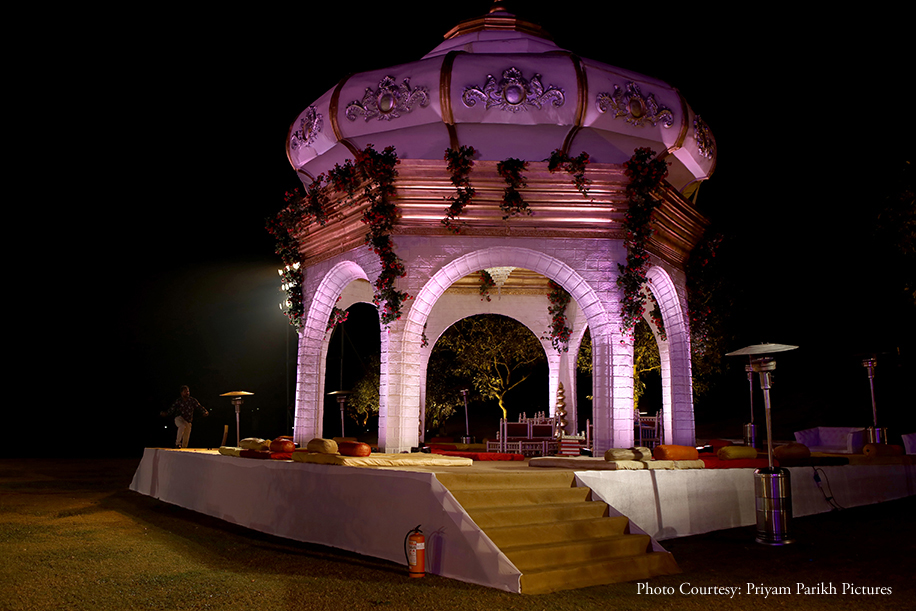 As everyone checked into the Aamby Valley Resort, the first event welcomed the guests in true Nawabi style. The enchanting performance of the Sufi dancers beckoned everyone into the magical ambience, peppered with purple and gold. Authentic qawwali entertainers followed the performance, serenading the guests as they enjoyed the delectable fare. The couples and their guests were dressed in beautiful tones of violet and pink as they swayed to the magical experience. It was a beautiful sundowner event for all who were present there.