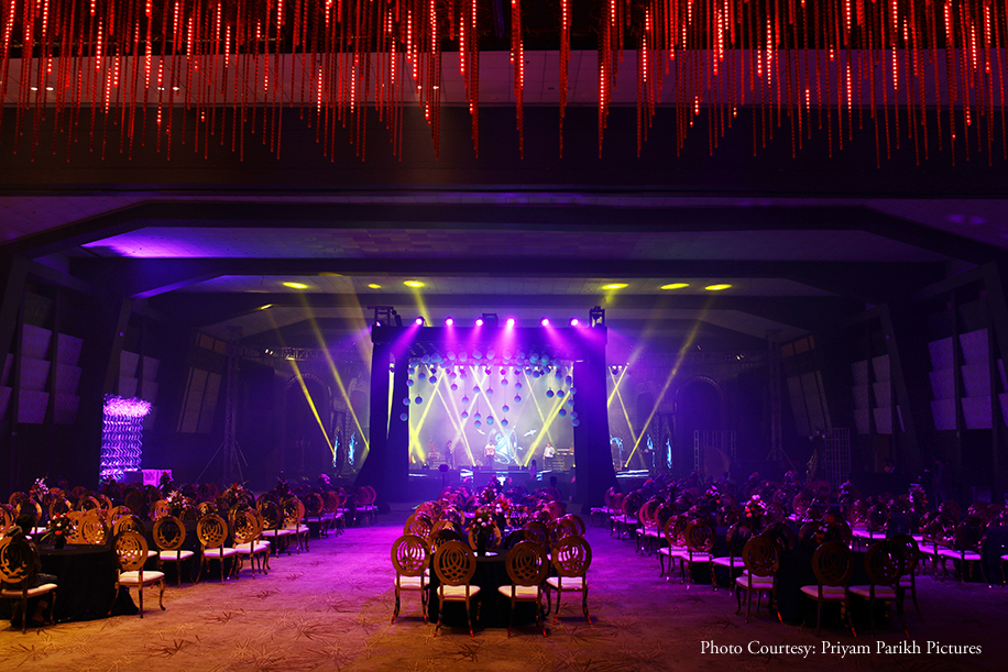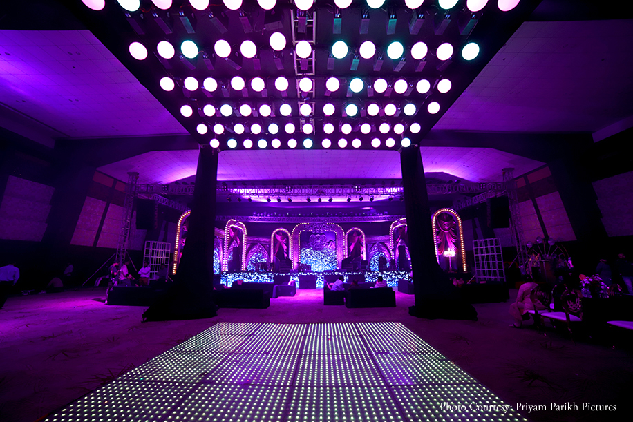 The sangeet was spectacularly designed to make everyone feel like they had walked into a star-studded gala. A stunning disco-ball setup welcomed one to the grand hall lit with choreographed lighting solutions and a massive stage. From the young ones and the parents of the to-be-weds, to the couples’ themselves rocking the dance floor made it a night to remember for all those who witnessed the marvel.