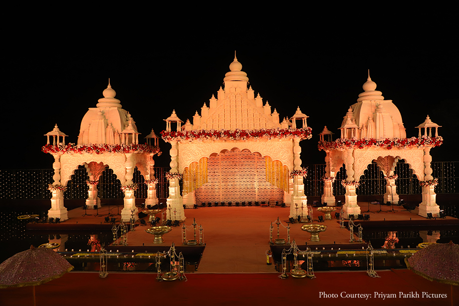 When the two brothers decided on embarking upon their respective new lives together, they had a clear vision of what they wanted for their wedding. They shared, “Getting the honor to tie the knot alongside your brother is a rare thing, and we wanted our celebration to be unforgettable and nothing less than a royal gala. Finding the right planner is of utmost importance to have the wedding of your dreams, and Rajat Sogani and Devang Shah of 7X-Weddings exceeded all our expectations. They handled every single aspect of the wedding from the word go and executed every idea and theme that was conceptualized by our sisters Asha and Usha to perfection. They worked so deftly that we were able to enjoy our planning period with our respective spouses peacefully”.