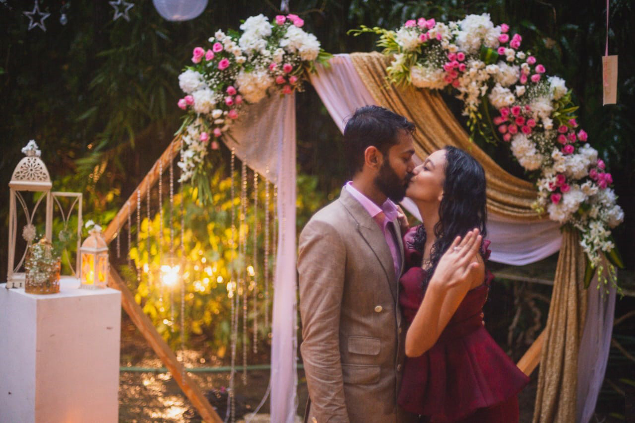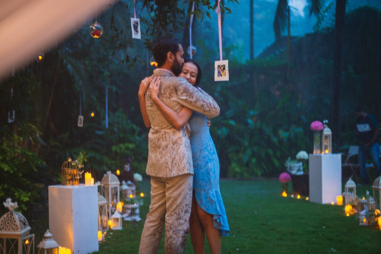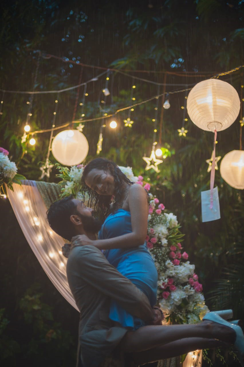 “When I saw him there on his knee, drenched and smiling up at me, I couldn’t care less about the rains. I was so thrilled, that I forced him to step out with me while it poured and we danced, and he presented me with the ring again. Later, our friends joined us and we celebrated the occasion with a quick jump in the pool at the bungalow.”