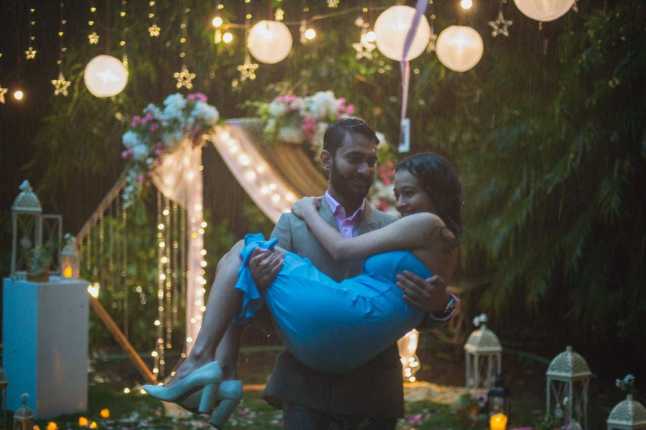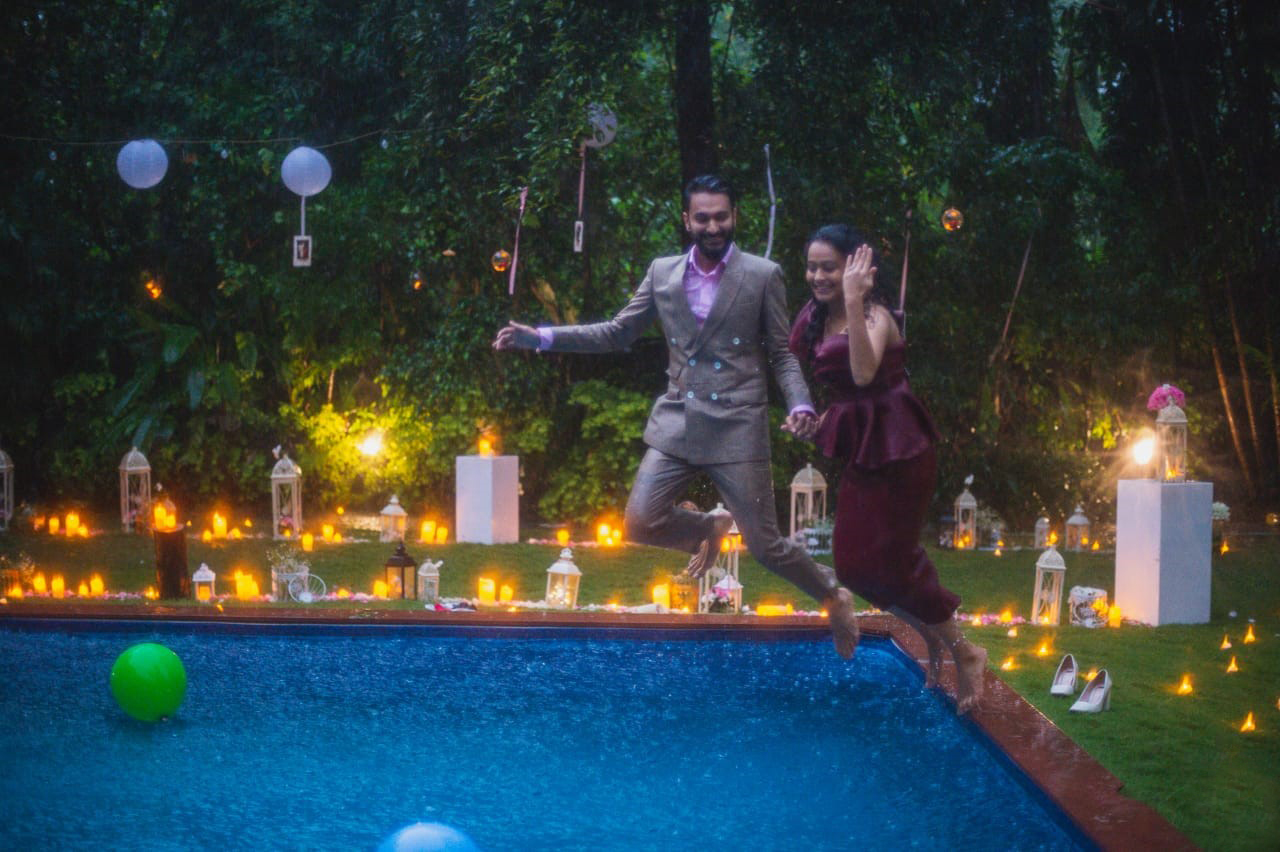 Pooja shares, “Aman started planning this day three months ago and had even hired various planners so that everything could go ahead without a glitch. He’d booked a bungalow in Alibaug for the weekend and made sure that it was a pet-friendly place since Rio was also going to be there. I thought that it was just another weekend getaway and readily agreed to go with him. He also asked me to dress up as he had planned a romantic meal before we reached the bungalow. Little did I know that he had such a big surprise in store for me!”