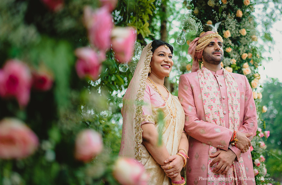 This lockdown wedding unfolded in the groom’s lush farmhouse with dedicated vendors, including a professional sanitization team