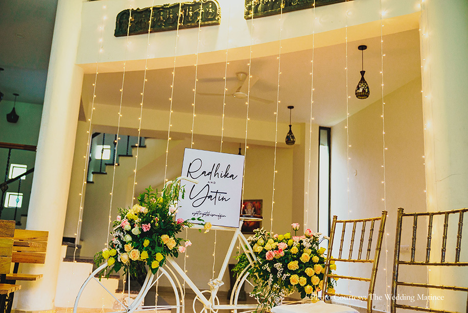 Sharing the creative process behind choosing themes for each function Radhika explains, “As it was a fusion wedding, we tried to include all customs as per Bihari and Haryanvi traditions. A tilak ceremony was followed by a Ganesh puja, a boisterous haldi function, a cocktail dinner where Yatin surprised us all with his moves, and finally the wedding ceremony.”