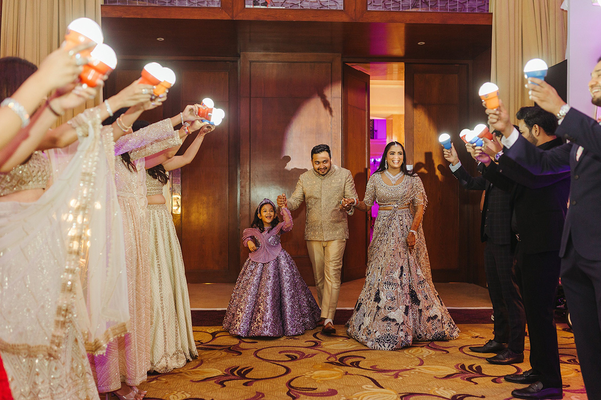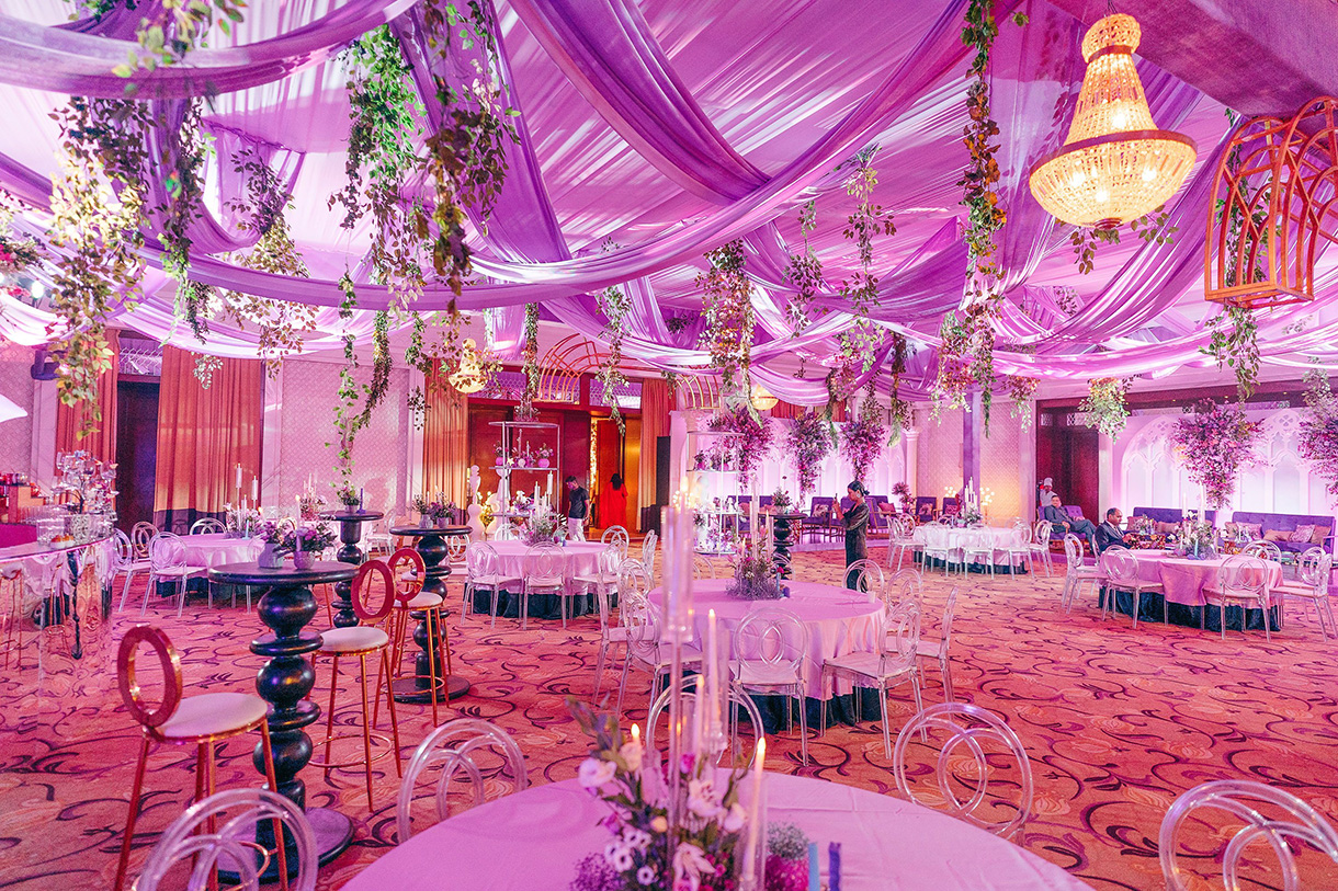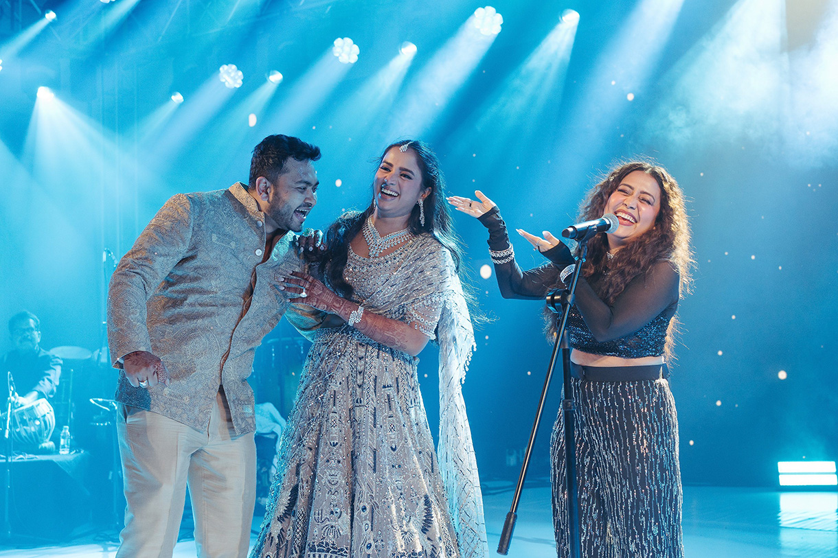 Guests entered through a spectacular floral tunnel of illuminated arches and crystal chandeliers, setting the stage for an evening of glamour and revelry. Inside, the ballroom was transformed with cascading lilac drapes, suspended foliage, and ornate chandeliers, creating a whimsical, garden-like ambience. The highlight of the night was a high-energy performance by Neha Kakkar, who turned the evening into a private concert, infusing every moment with music, magic, and memories.