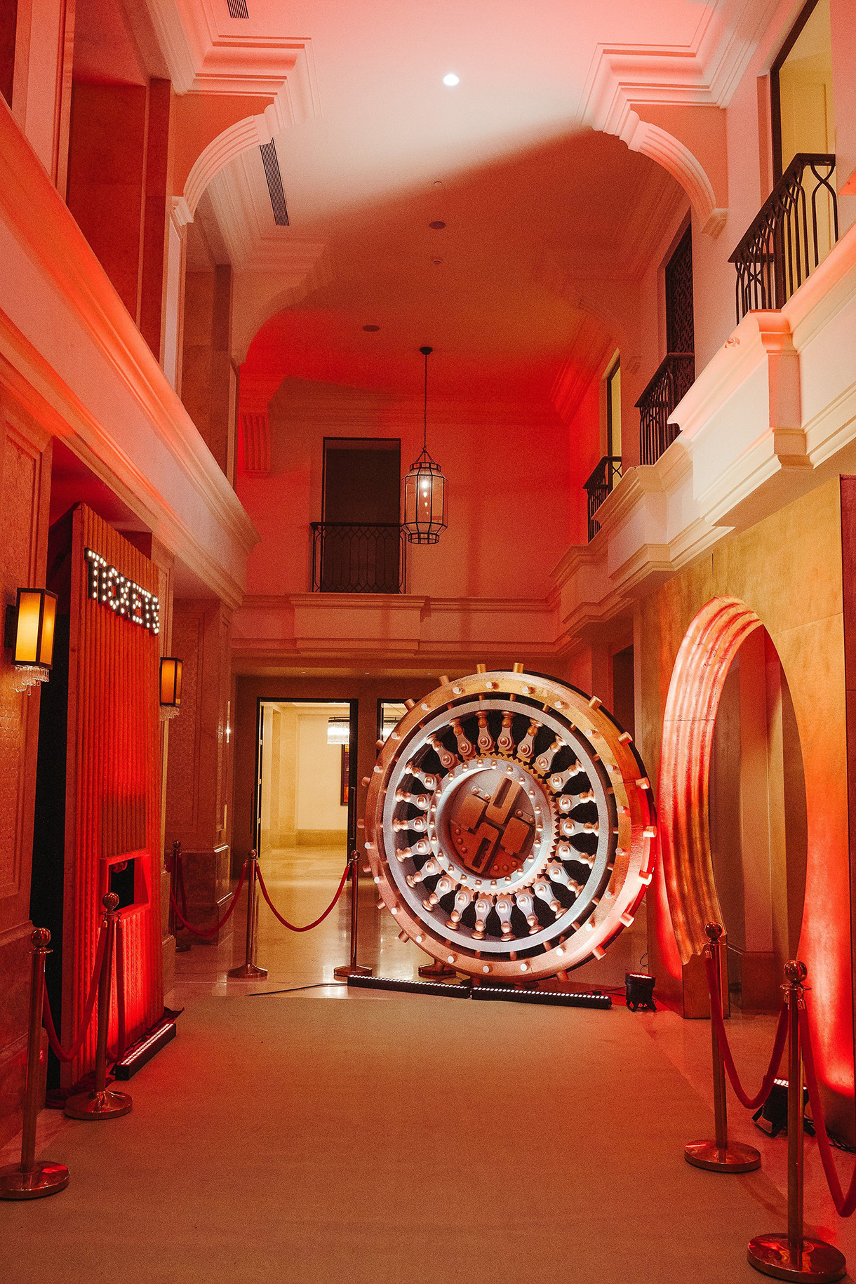 Drenched in rich crimson and black tones, the décor featured velvet drapes, retro props, and bold floral accents that set the stage for a high-octane evening. A dramatic light-framed stage, complete with theatrical smoke effects and concert-style lighting, added a sense of spectacle. Guests were treated to a night of performances, stylish indulgence, and immersive entertainment—all wrapped in an atmosphere that felt equal parts opulent and electrifying.