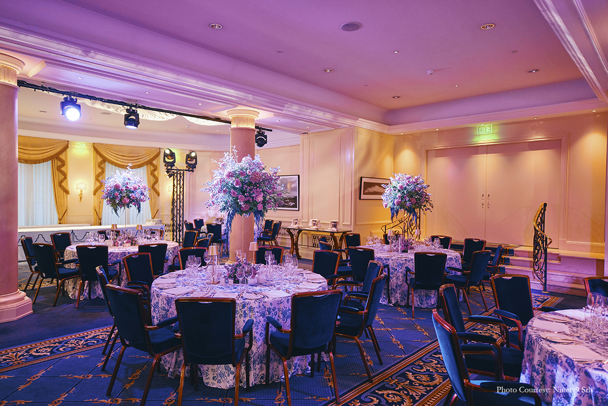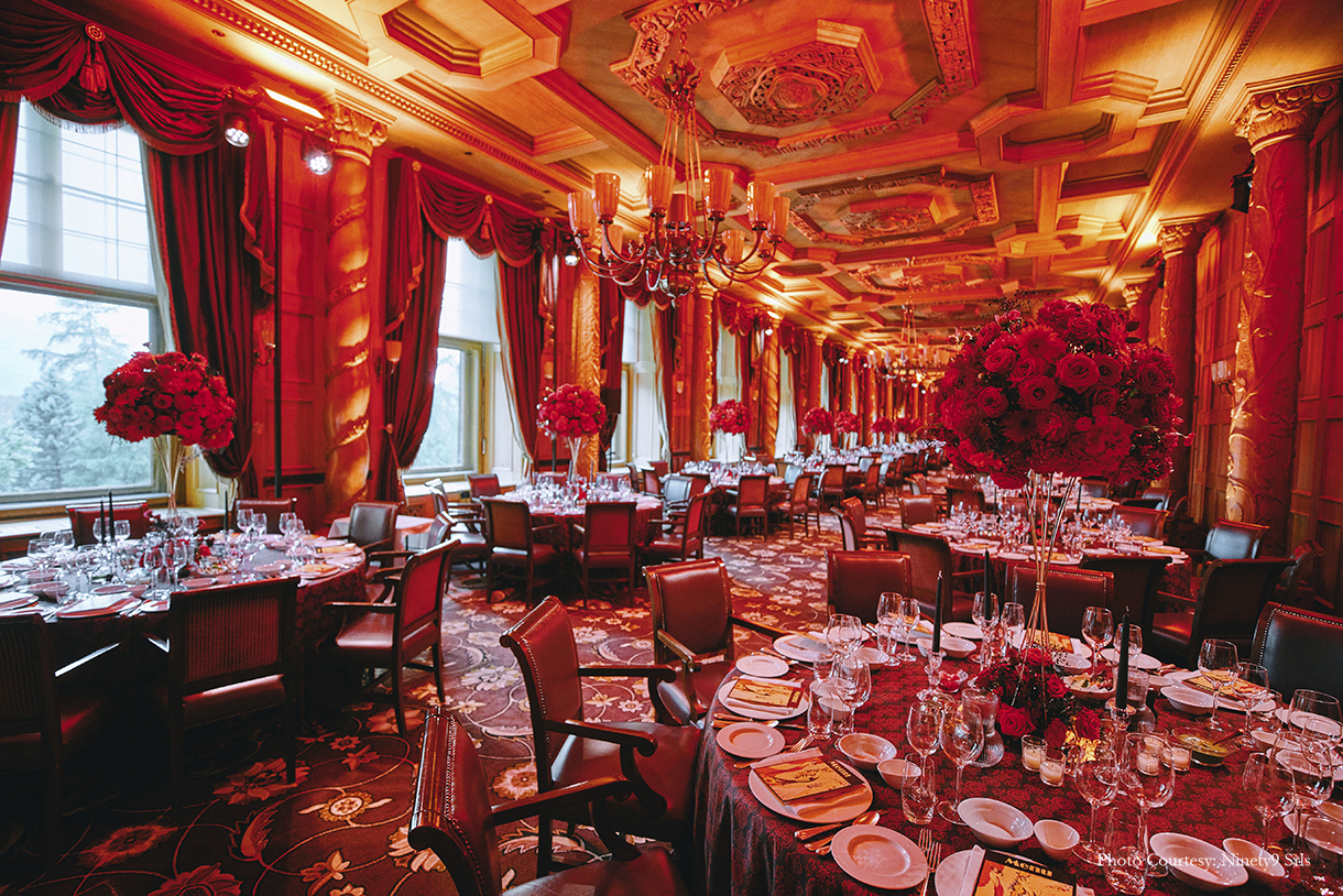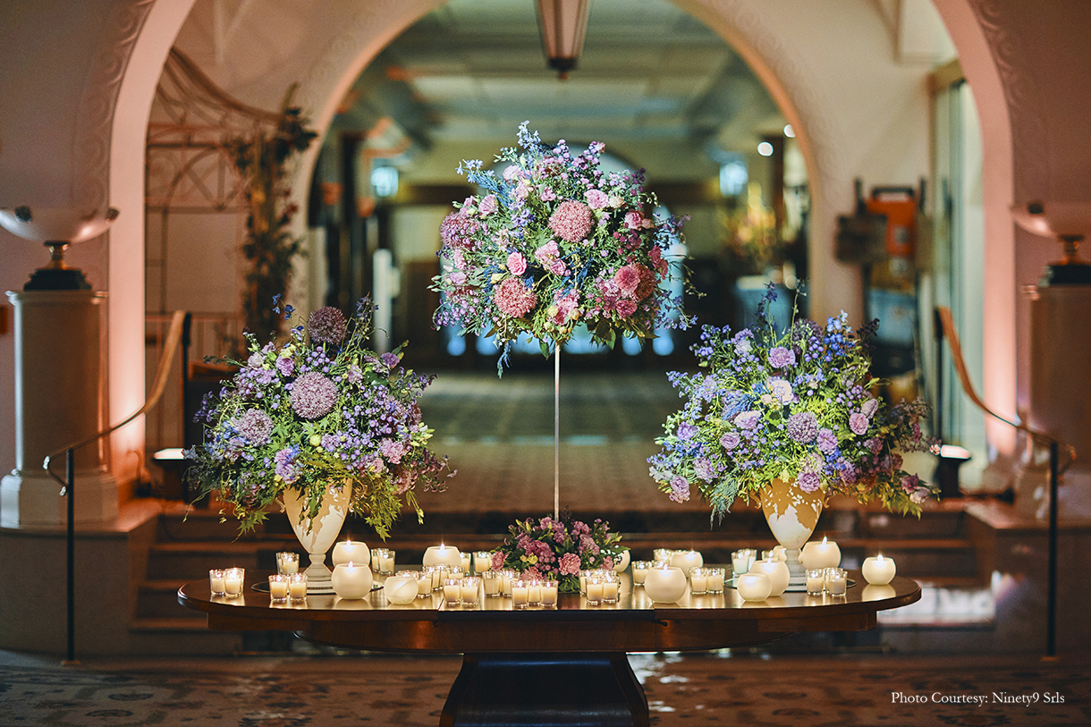Describing the beauty of the landscape and how they molded their plans around it, Bhavnesh Sawhney and Farid Khan from FB Celebrations share, “The revelries took place at the iconic Suvretta House in St.Moritz which has been a luxurious hotspot amongst the jet-setters. The venue itself exudes elegance and grandeur. We wanted to build on these elements as we went ahead planning the wedding. Everything was kept delicate right from the bloom arrangements to the illumination. All in all, this venue was a refreshing change and quite extraordinary with its serene beauty. Consequently, we ensured that not a detail was overlooked as we wanted the events to merge seamlessly with the venue’s allure.”