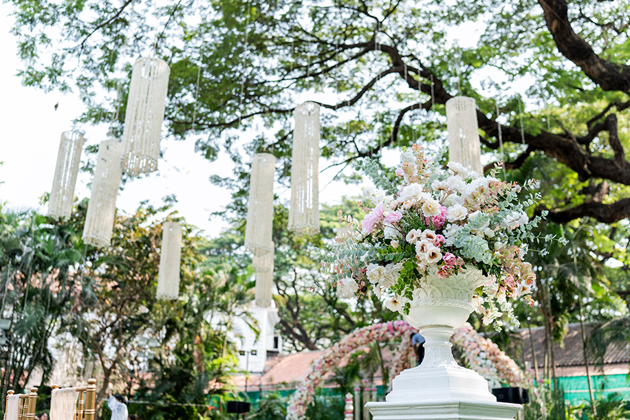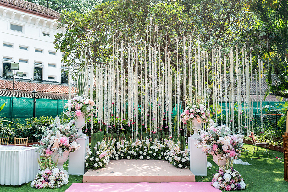 The couple selected a number of elite venues in South Mumbai for their wedding festivities, hosting their Haldi and Mehndi functions at Canto Restaurant and Banquet, their Cocktail at The St. Regis Mumbai, and their wedding at Turf Lawns and Enclosure. Tasked with planning the details of each event, Team Niché Events conceptualized decor that was minimal yet elegant.