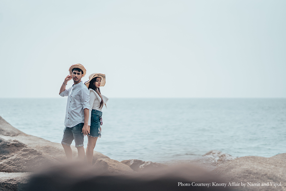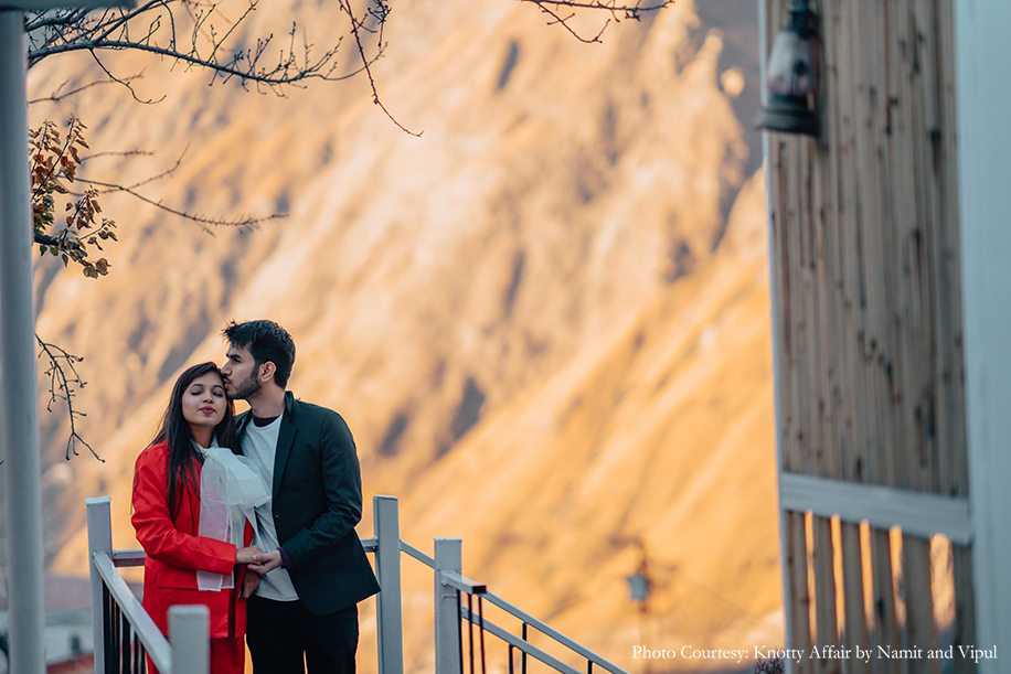 From beaches to the mountains, Kinjal and Raj played with different colors, costumes and picturesque locations for their pre-wedding photoshoot. WeddingSutra Favourite – Knotty Affair by Namit and Vipul, ensured that the couple got the best pictures possible through their incredible work behind the lens. Scroll down and see their pictures unfold.