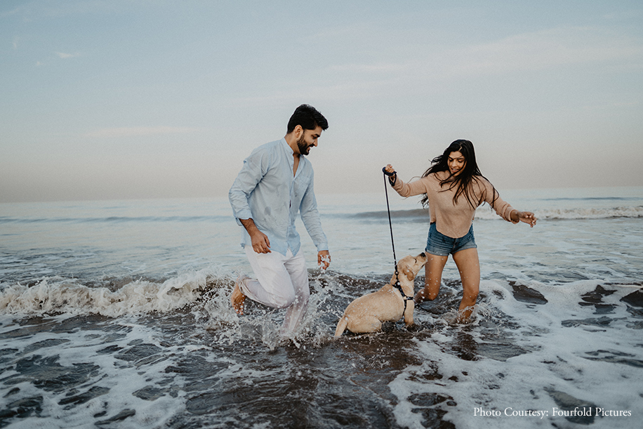 Kehkasha and Jenish come from different religious backgrounds. Needless to say, they had to fight hard for their love, and they finally emerged stronger, together. To celebrate their love, the couple decided to have a wonderful photoshoot by the beach with their furry friend where WeddingSutra Favorite – Fourfold Pictures took the opportunity to capture beautiful moments between the trio.