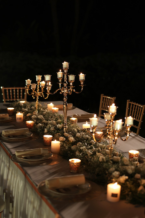 This wedding proposal was a breathtaking melange of white blooms, opulent gold elements and candles!