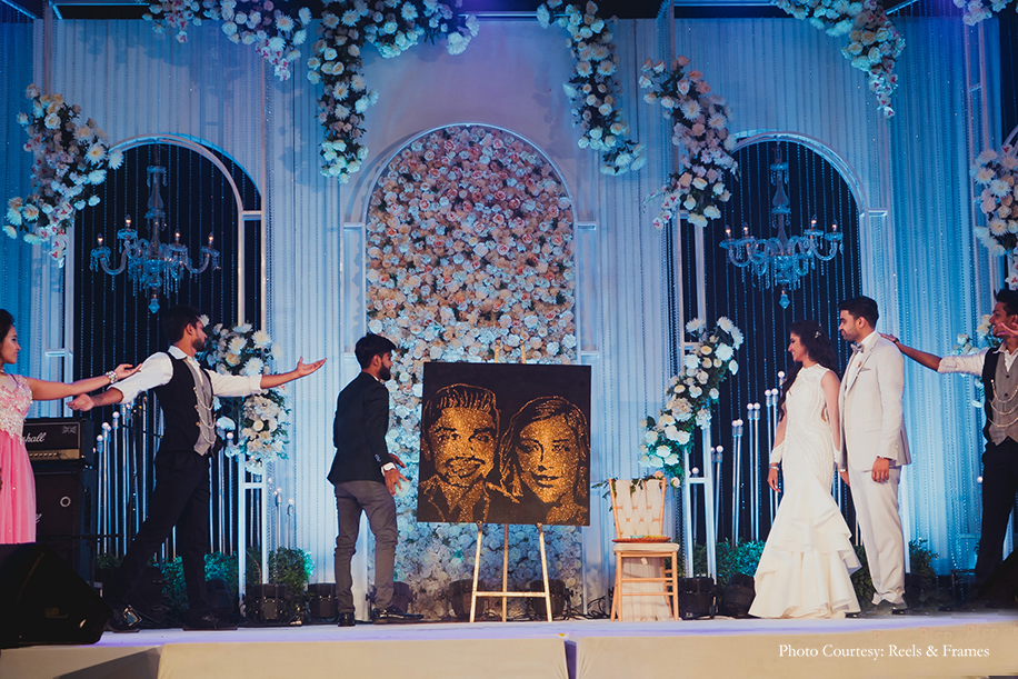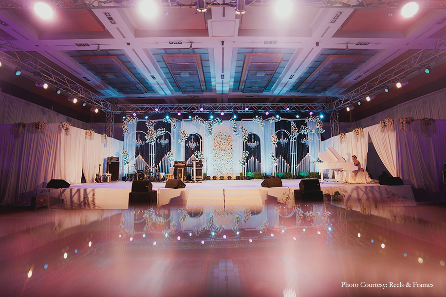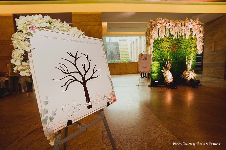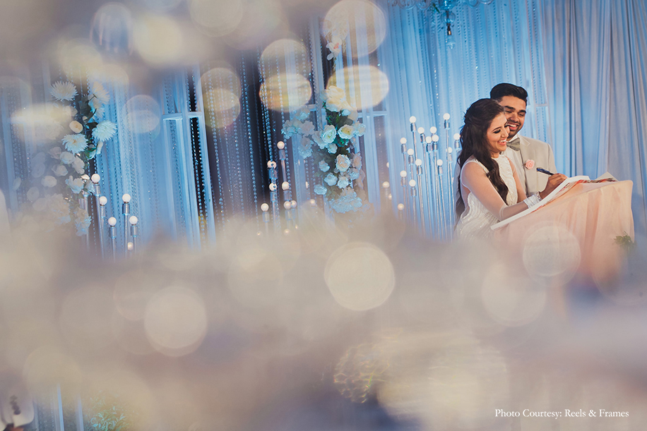 Jay and Disha were clear from the start that they wanted an engagement ceremony with a white wedding theme that would include quirky vintage decor elements. WeddingSutra Favorite – Swaaha Wedding Management Co conceived and executed the elegant Western-style event whose special moments were captured by another WeddingSutra Favorite – Reels & Frames by Anand Rathi.