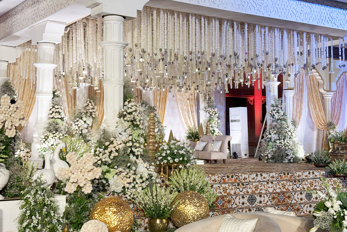 This white and gold-hued summer wedding looked straight out of a dream with its extravagant blooms and larger-than-life setups!