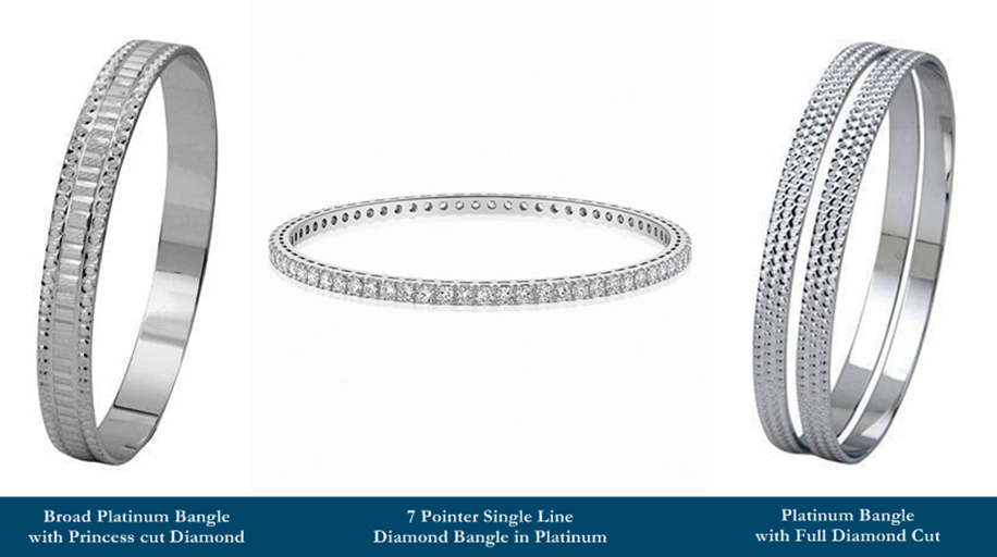 Imagine a constellation of twinkling stars encircling your wrists – that’s exactly the essence of these beautiful platinum bangles which are studded with beautifully cut diamonds. You can wear them stacked together or individually. You are assured of the platinum’s total purity as these bangles carry a Certificate of Authenticity from the Platinum Guild International testifying that they are made of 95 per cent aluminium (Pt 450).