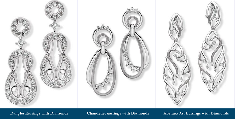 Abstract Art Platinum Chandeliers Earrings with Diamonds