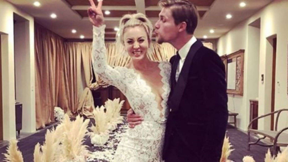 Walking down the aisle moments after saying their vows, ‘The Big Bang Theory’ star Kaley Cuoco and Karl Cook looked happier than ever. The couple tied the knot in an intimate wedding ceremony at a horse stable near San Diego, California.