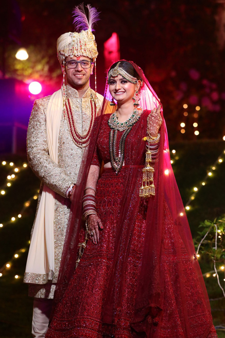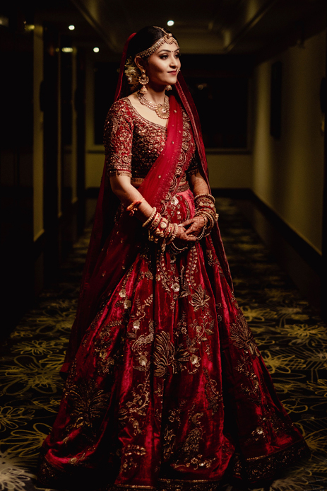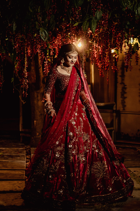 Crafted for the bride who loves her roots yet paves her own way, this rich scarlet lehenga makes sure the spotlight is on you!