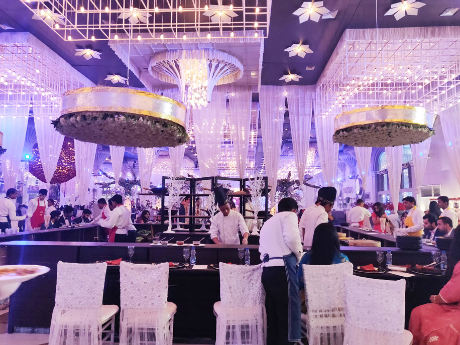 “ A little animation goes a long way and never fails to create a lasting impression. Keeping this in mind, we introduced the Japanese concept of serving sushi on conveyor belts. We had them installed and placed small plates of scrumptious sashimi, nigiri, and sushi rolls on these conveyor belts. The guests can grab the variety that they prefer as the dishes make their way around. We extended the scope of this concept and used it to serve desserts too. We debuted the latter only recently and it left the wedding guests mesmerized!” – Varun Tuli of Food Inc. Catering by Yum Yum Tree