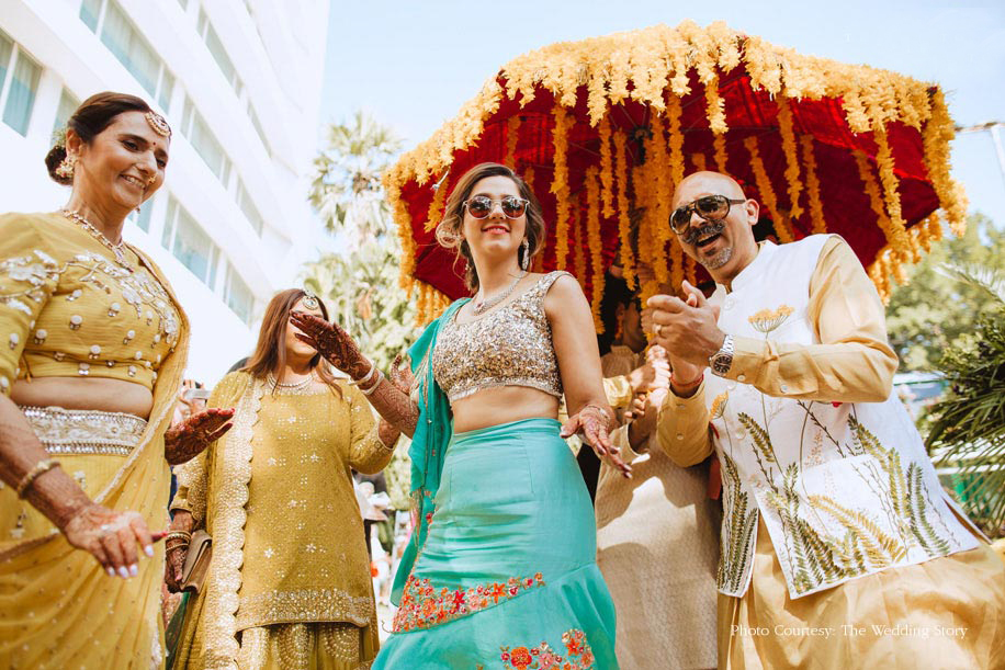 Bride’s Outfits: Sharnita Nandwana (Sundowner), Half Full Curve (Mehndi), Manish Malhotra (Sangeet), JADE (Wedding), Swapnil Shinde (After Party)