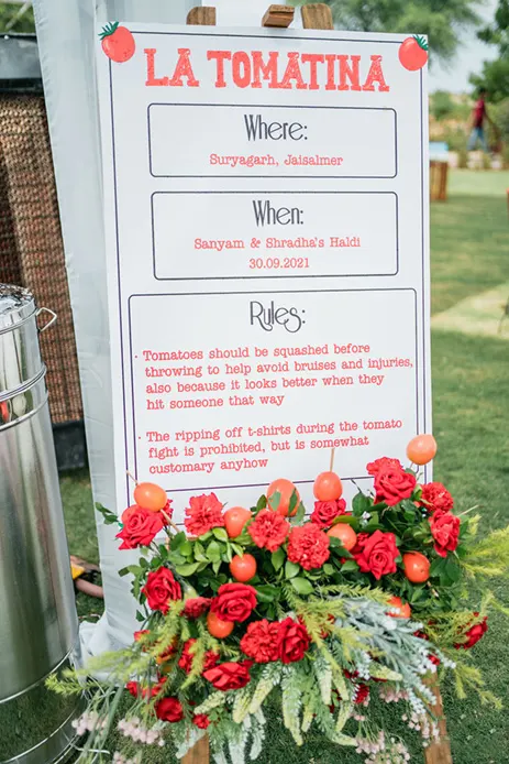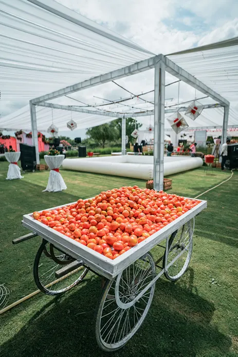 Continuing the flurry of uniquely themed celebrations was a fun-filled Tomatina Festival-inspired event. Ishan elucidates, “The next day was a Tomatina Festival inspired by Spain. Friends and family enjoyed the Spanish culture by throwing tomatoes at each other and soaking in the sun. At the same time, we ensured that all safety protocols were followed as we encouraged everyone to wear masks and keep a safe distance.”