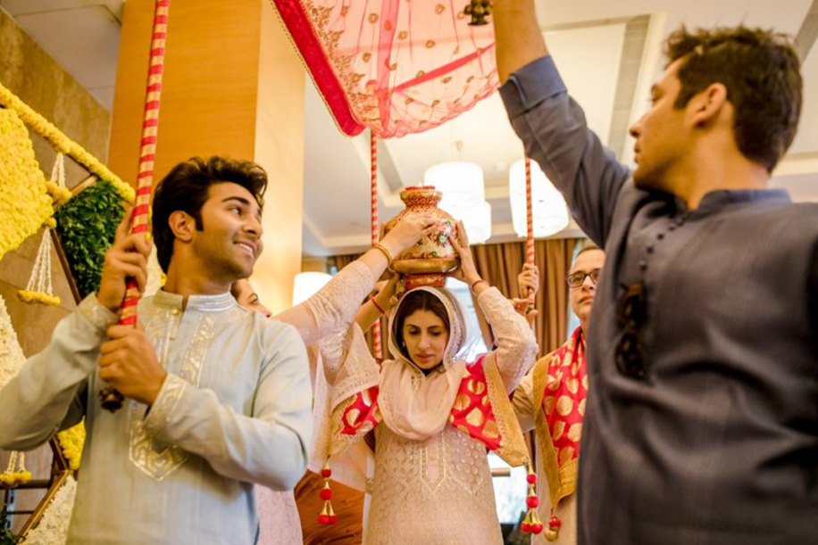 Shweta Bachchan-Nanda played the role of a Kapoor Bhabhi as she carried the ghadoli for the bride while Armaan’s brother Aadar Jain walked her under the chaadar towards the bride.