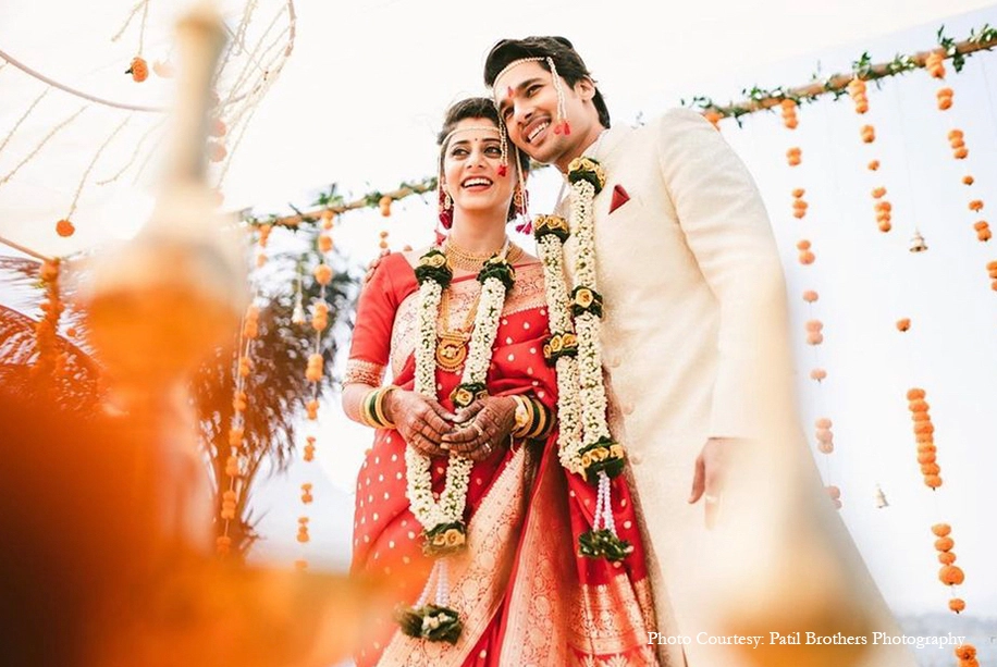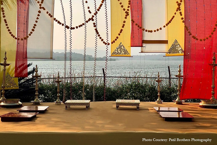 Encircled by the stunning views of the lake that added a touch of tranquility to their union, Neha Shinde and Suyog Gorhe’s wedding in Nashik not only expressed their vivacious personalities but also their rich Maharashtrian heritage. Planned and decorated by WeddingSutra Favorite – Nose to Tail Events, it’s safe to say that this wedding created a vibrant splash against the pale blue Nashik sky!