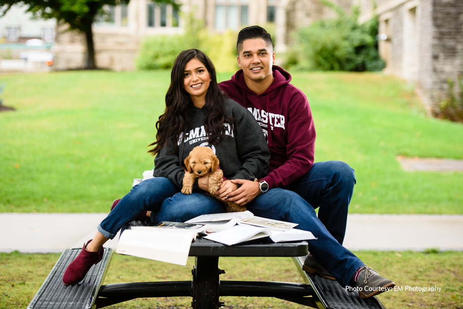 Once the locations were decided, it was easy to pick out outfits and the props that we were going to use. We purchased matching McMaster sweatshirts for us. We still had some of our undergraduate textbooks stowed away which made for great props as well.
