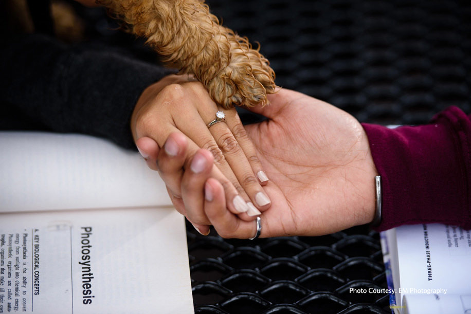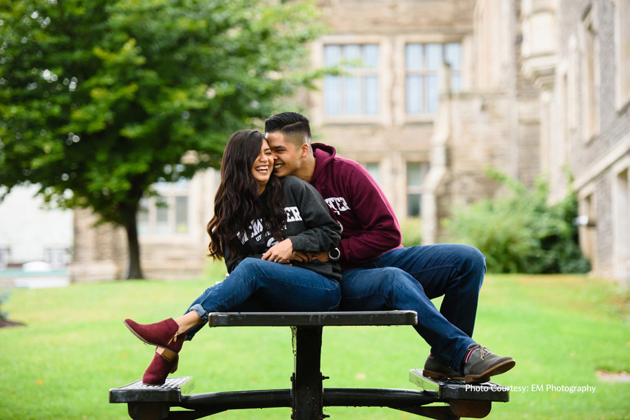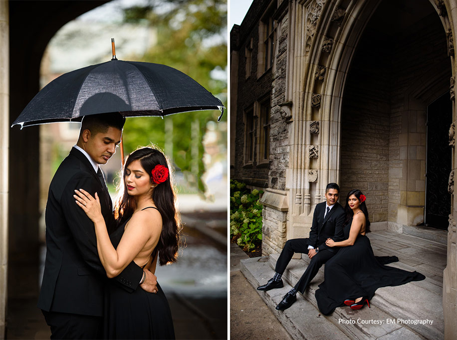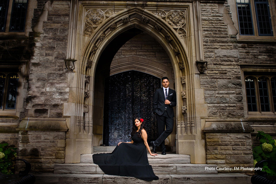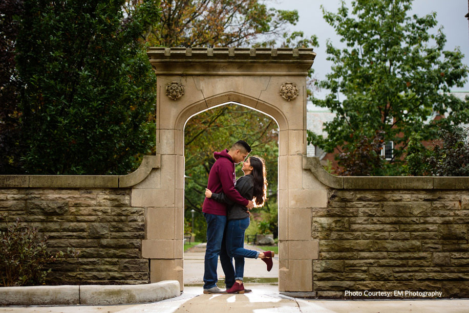 Both students at McMaster University in Hamilton, Vagmi and Suraj were college sweethearts. In the run up to their wedding, the two wanted to spend some time alone and also revisit their early romance and decided on a pre-wedding shoot on the campus where they met and fell in love.