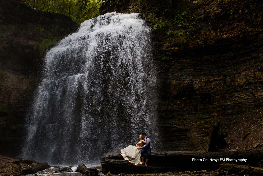 “We thought it made sense to go back to where it all began, at McMaster University. The campus is absolutely beautiful and I had always imagined taking our engagement pictures there. Hamilton is also known for its waterfalls, and Tiffany Falls is where we went on one of our dates.