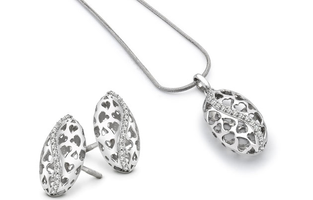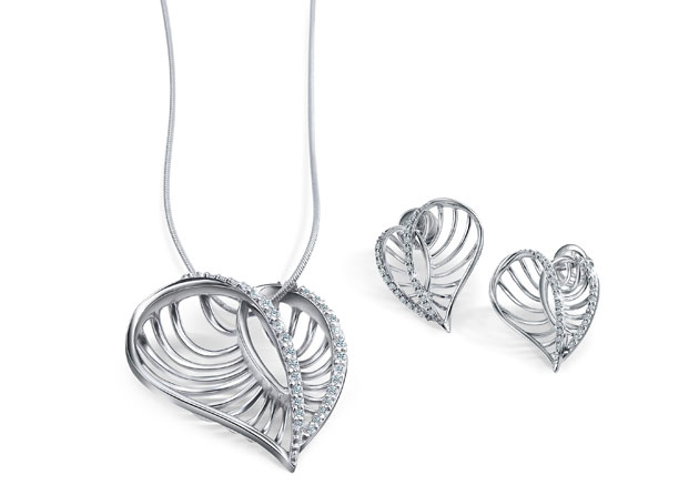 Unique heart shaped, platinum chain pendant and earring set from TBZ – The Original