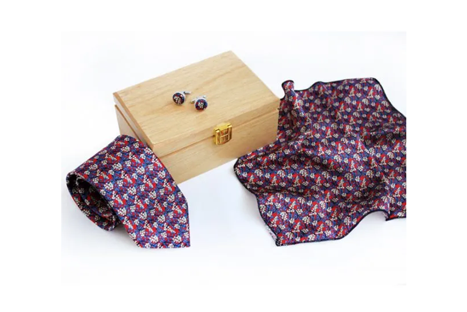 If your man is someone who loves experimenting with his style, this red silk tie set can add a pop of color to his outfits.